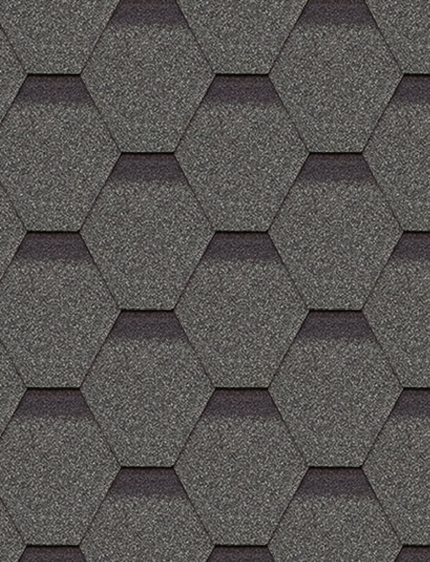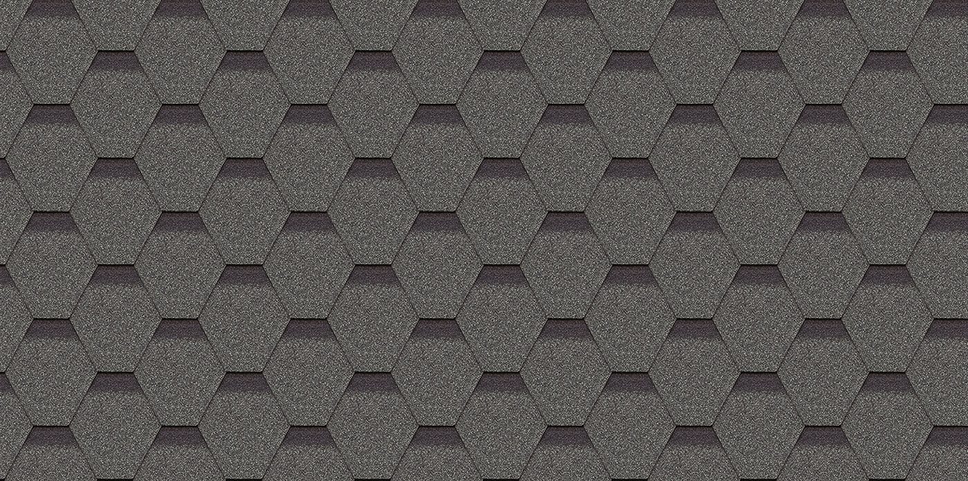 Фигурные элементы гибкой черепицы, они же гонты, укладываются внахлест на сплошное основание кровли. Уклон крыши должен быть не менее 12 градусов. В коллекции Шеффилд с гексагональной формой нарезки гонта 6 цветов на выбор, среди которых универсальный оттенок серого «Фладен».